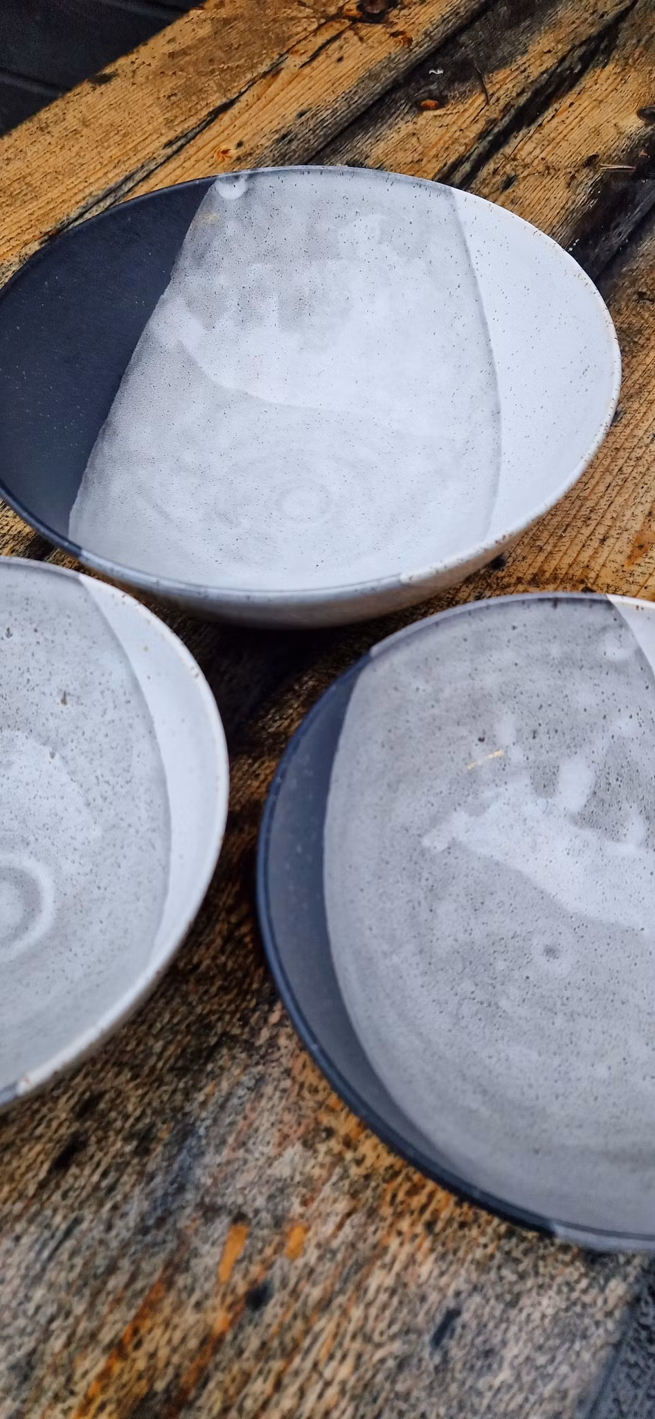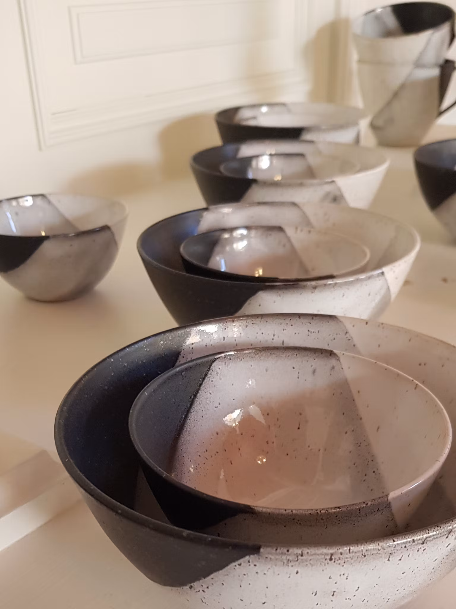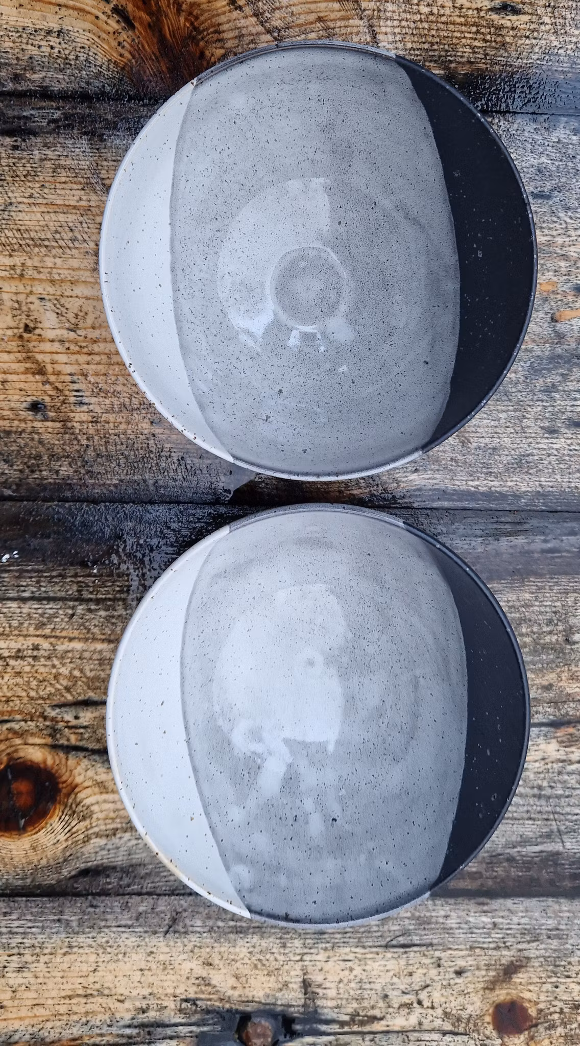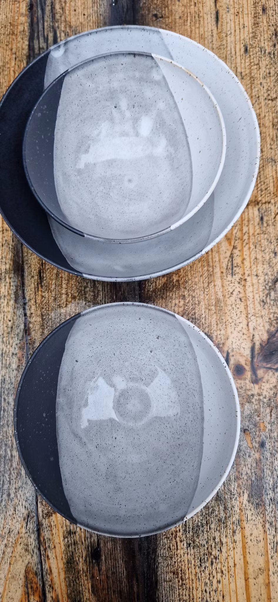 Godset är dubbeldoppat i svart och vit stengodsglasyr och färgerna kan variera.
